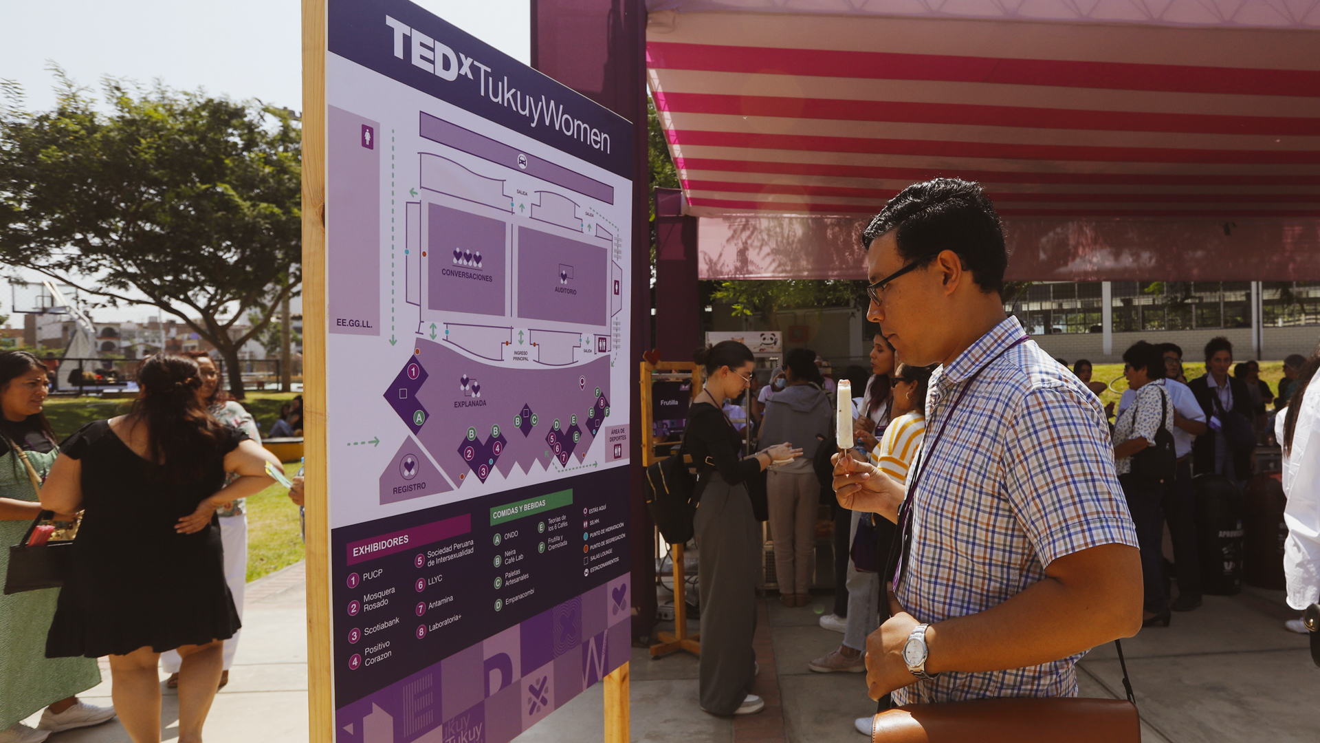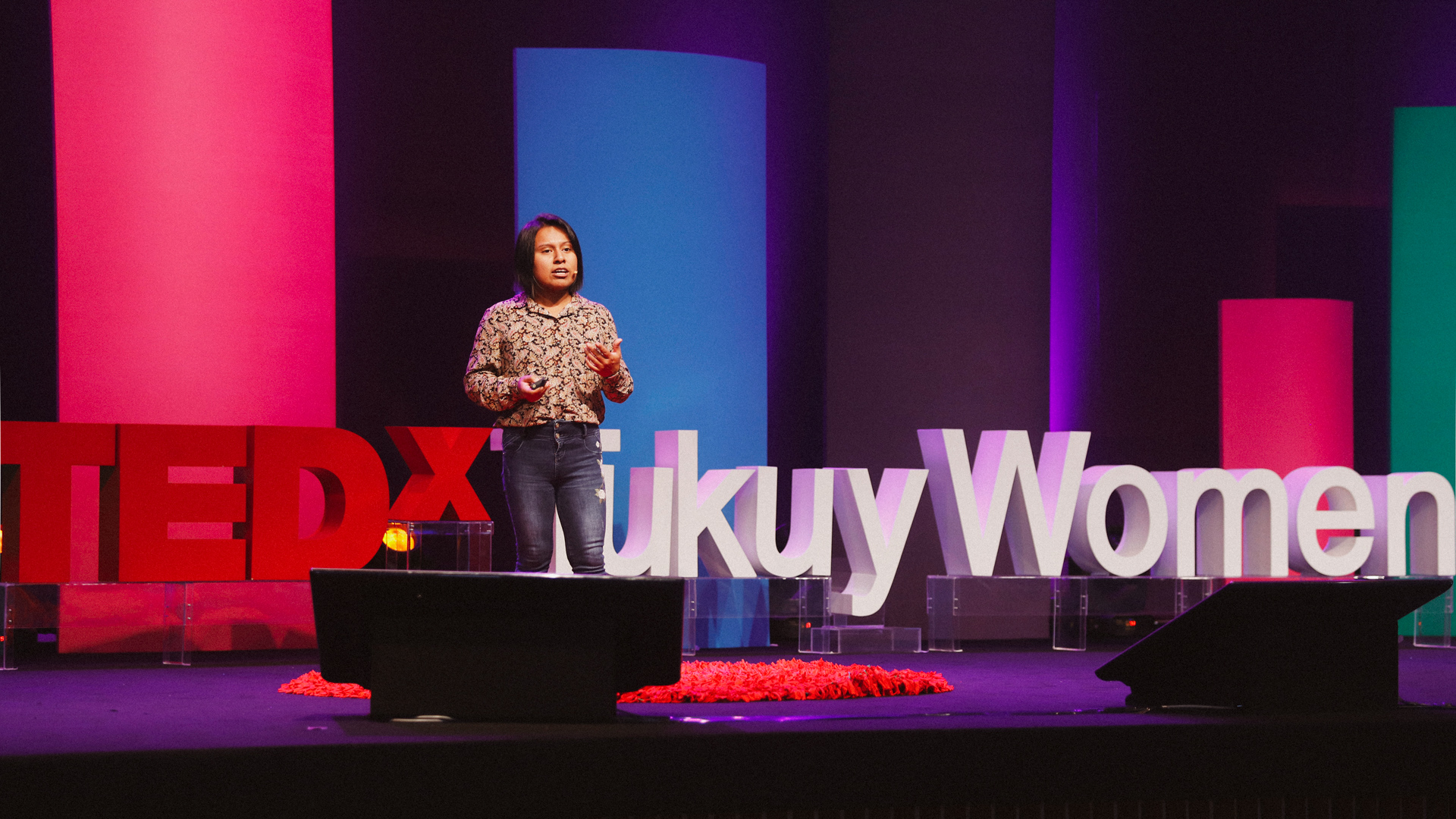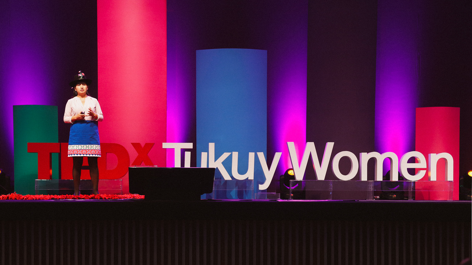 TEDxTukuyWomen 2024: Festival of Change was developed between January and April 2024 by the TEDxTukuy Experiential Team, led by designers Rocío Zegarra and Gabriel Cordova. Gabriel was directly involved in brand, strategy, stage, facilities and wayfinding design and implementation.