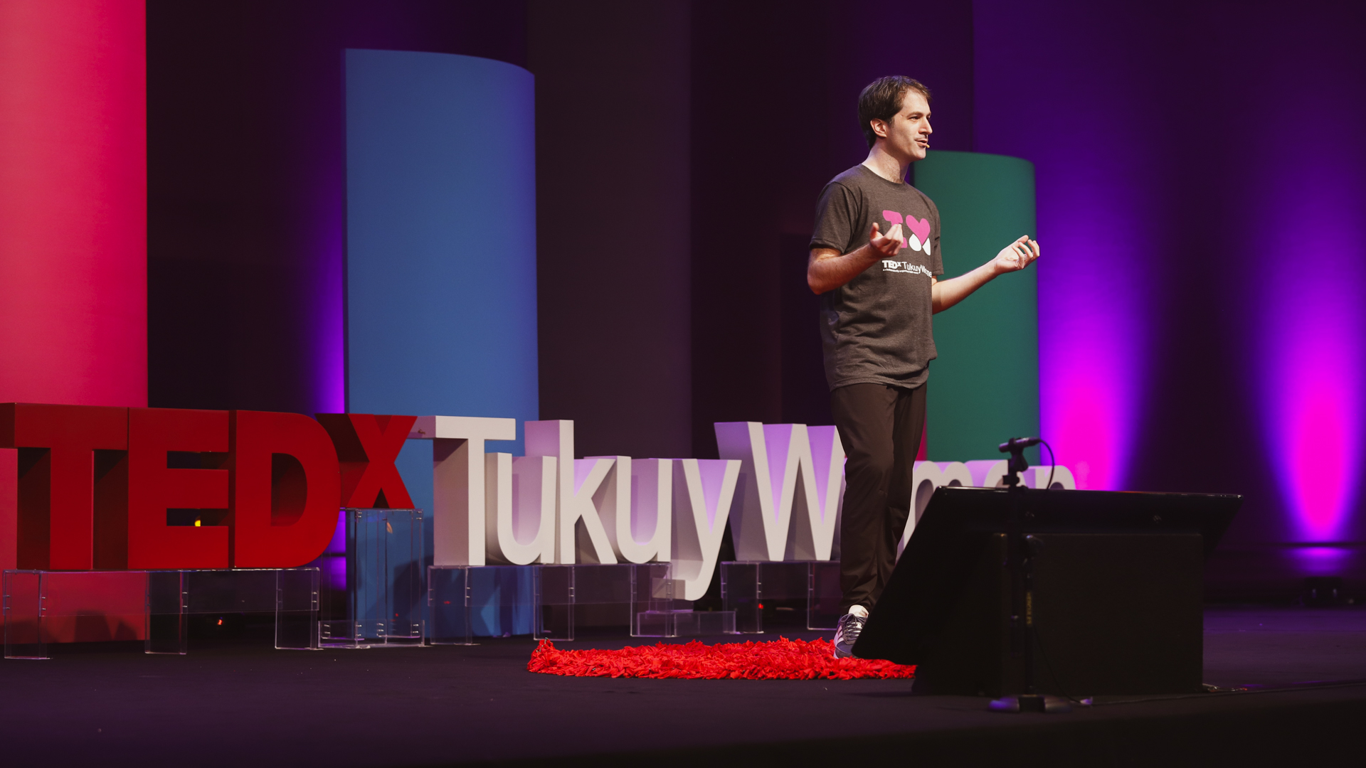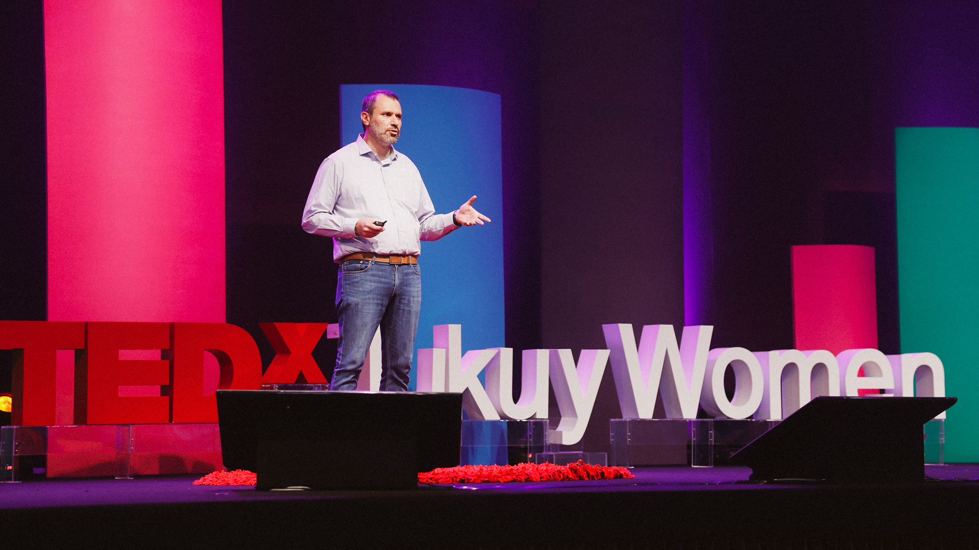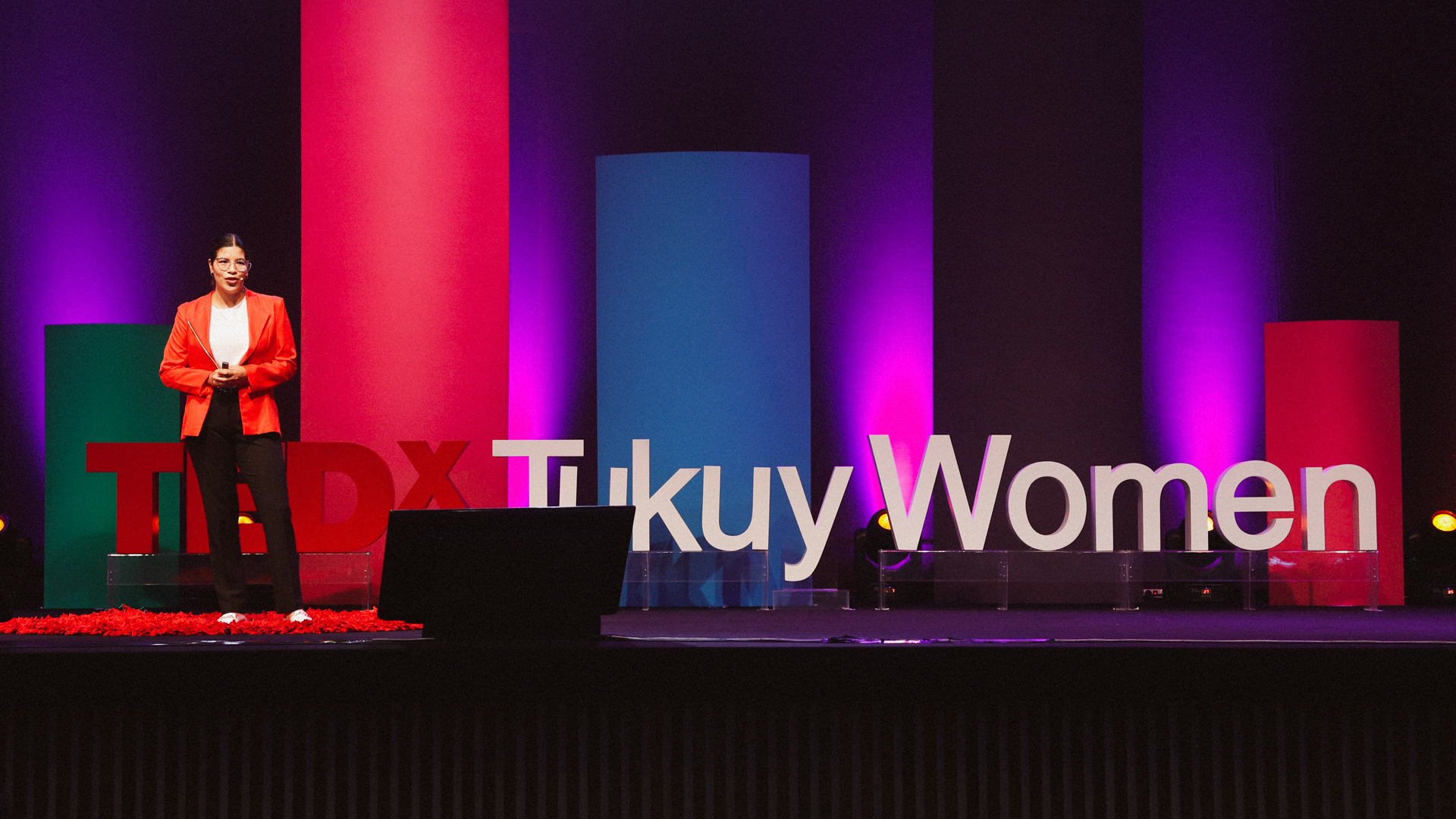 TEDxTukuyWomen 2024: Festival of Change was developed between January and April 2024 by the TEDxTukuy Experiential Team, led by designers Rocío Zegarra and Gabriel Cordova. Gabriel was directly involved in brand, strategy, stage, facilities and wayfinding design and implementation.